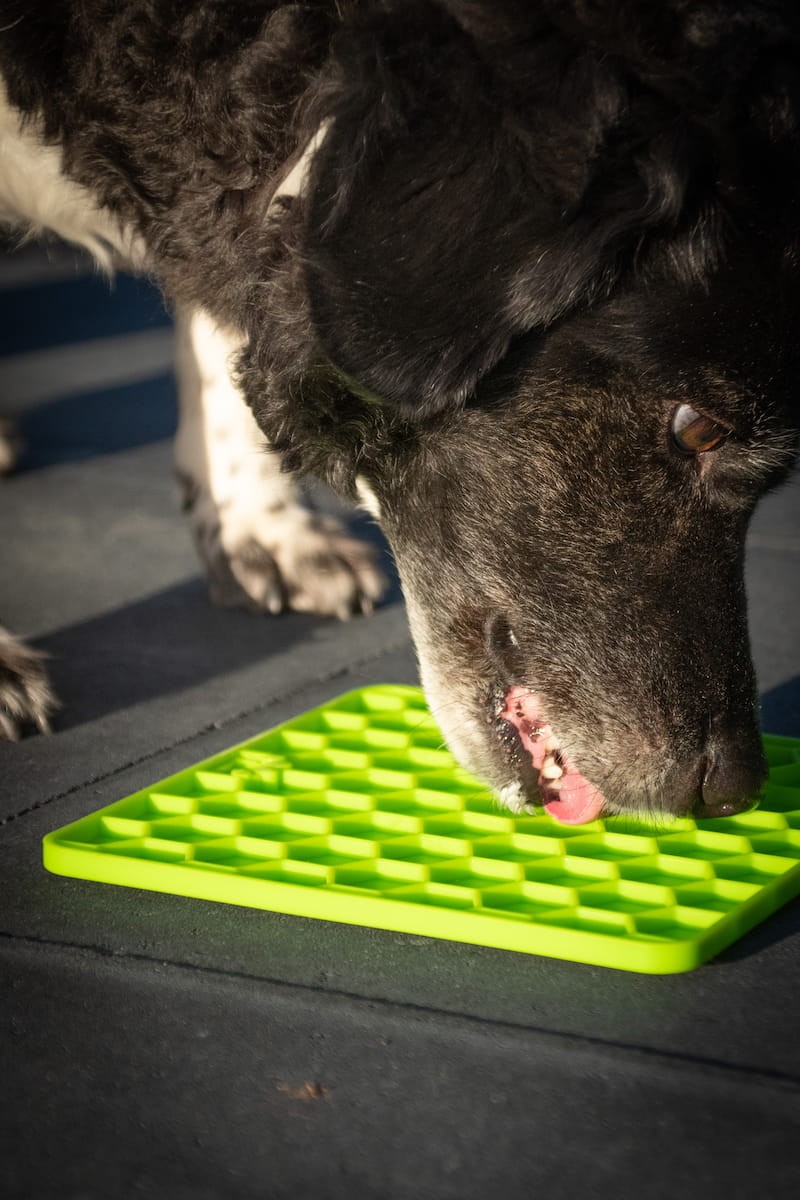 "Eat Slow Live Longer" laižymo kilimėlis idealiai tinka naudoti, kai šuo neišbūna šukuojamas ar maudomas. Laižymas turi raminamąjį poveikį!
